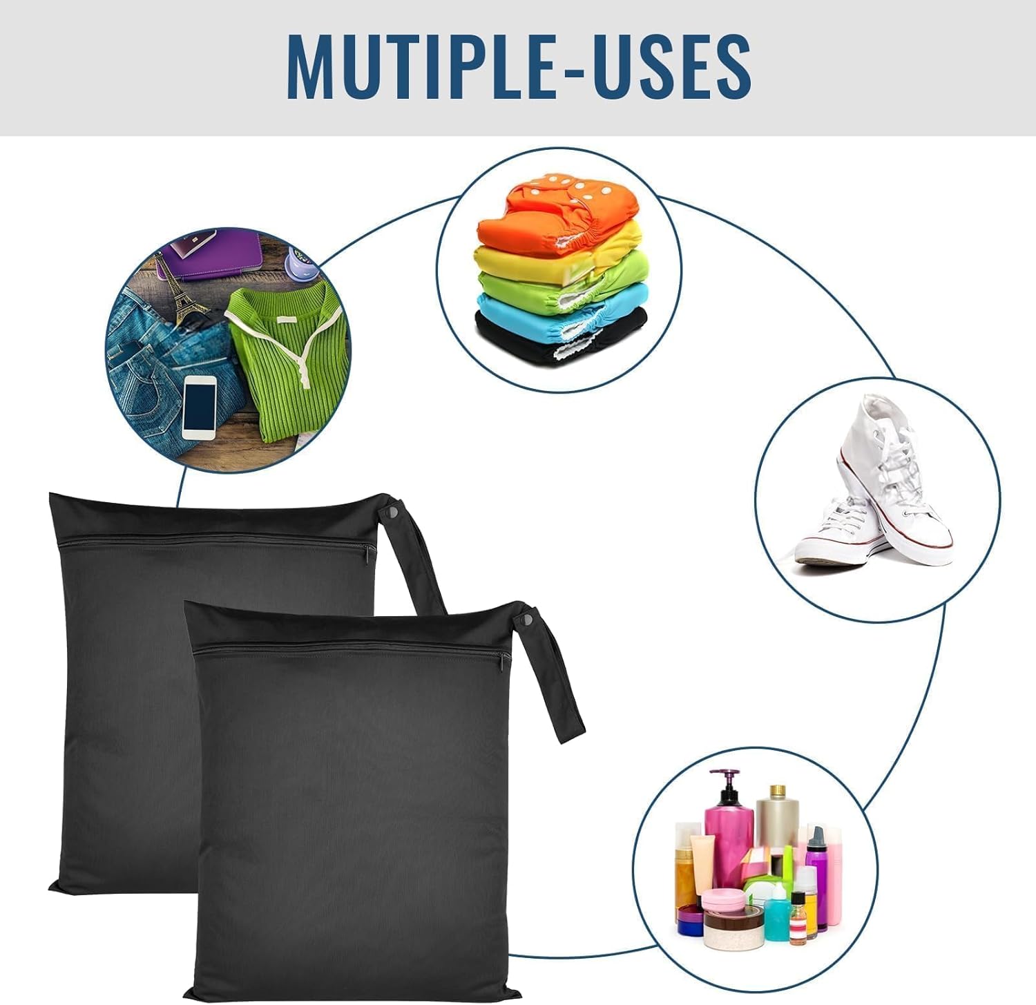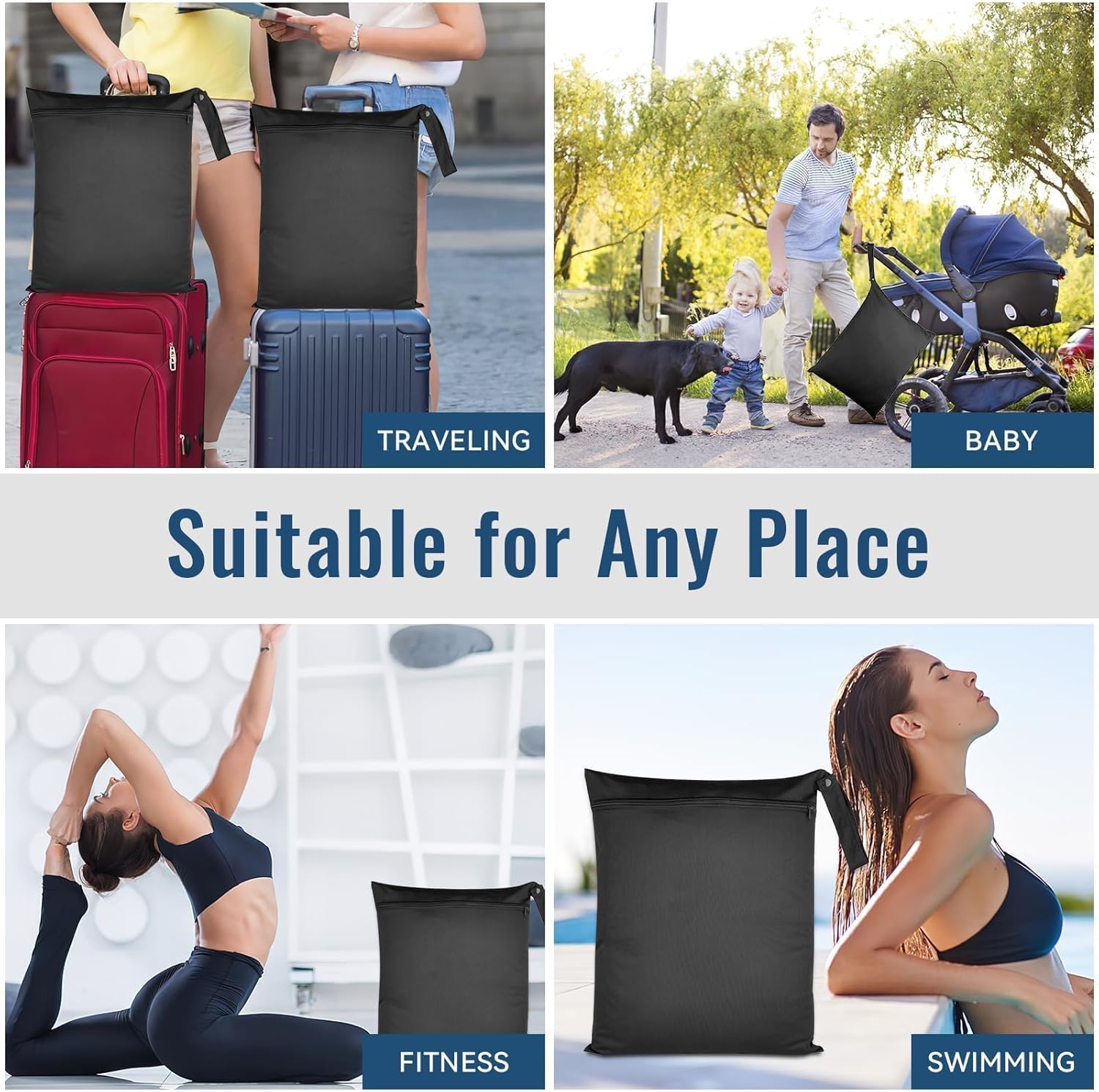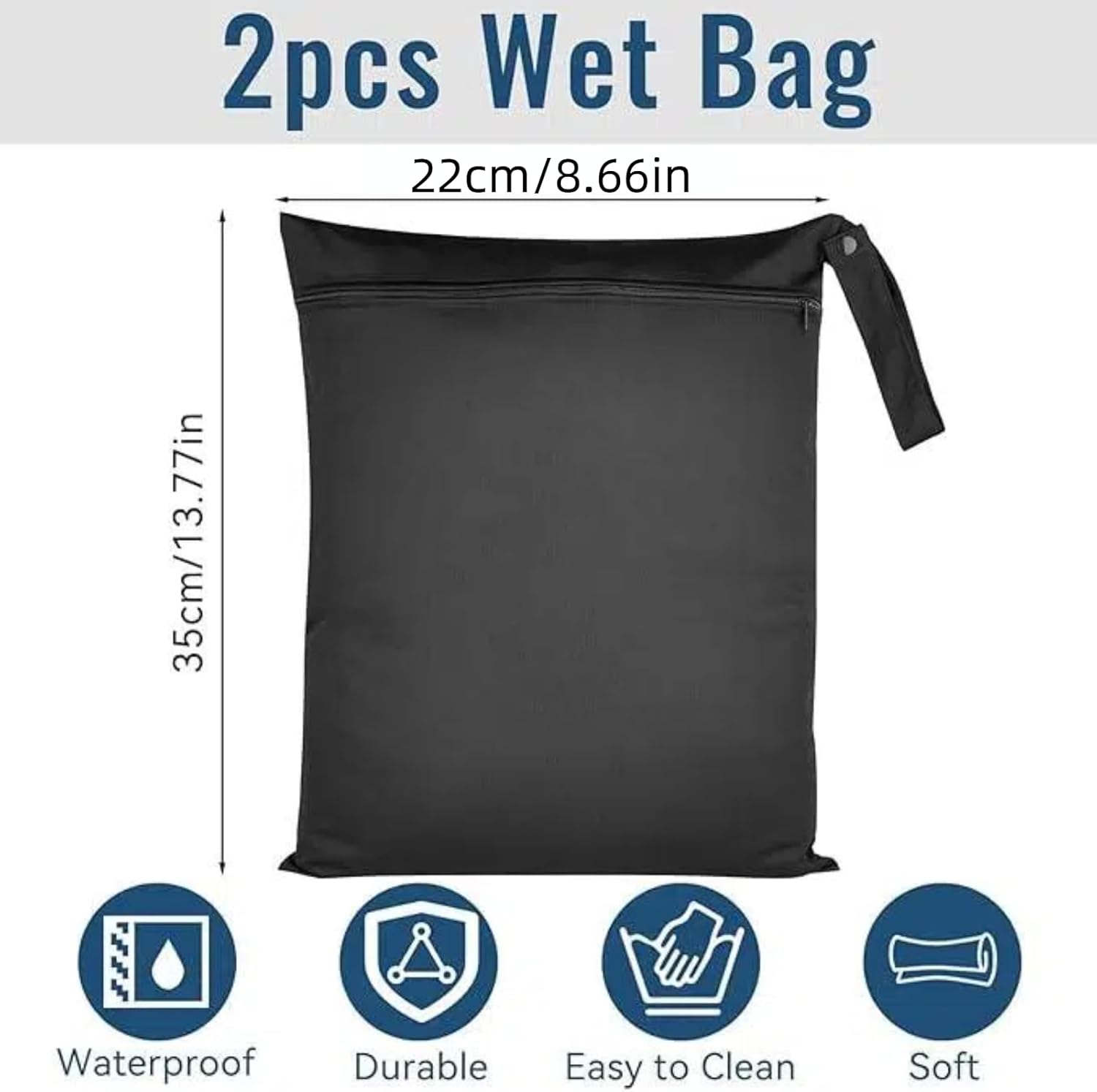 2 Pcs 22x35cm wet bag, Schwarze Wasserdichte Nasstaschen Mit Reißverschluss – Wiederverwendbare Feuchtigkeitsbarrierebeutel Für Schwimmbäder, Sport Und Reisen Zur Aufbewahrung(Black)