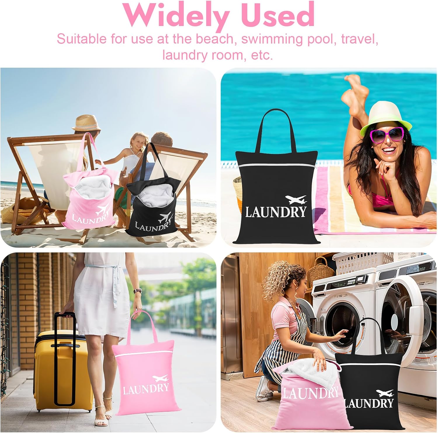2 Stk Große Reise Wäschesack, Wäschebeutel mit Griff, Wasserdichte Wetbag Schwimmsachen, Wiederverwendbar Nassbeutel Nasstasche für Gym Dorm Schmutzige Kleidung Strandtücher (Schwarz, Rosa)
