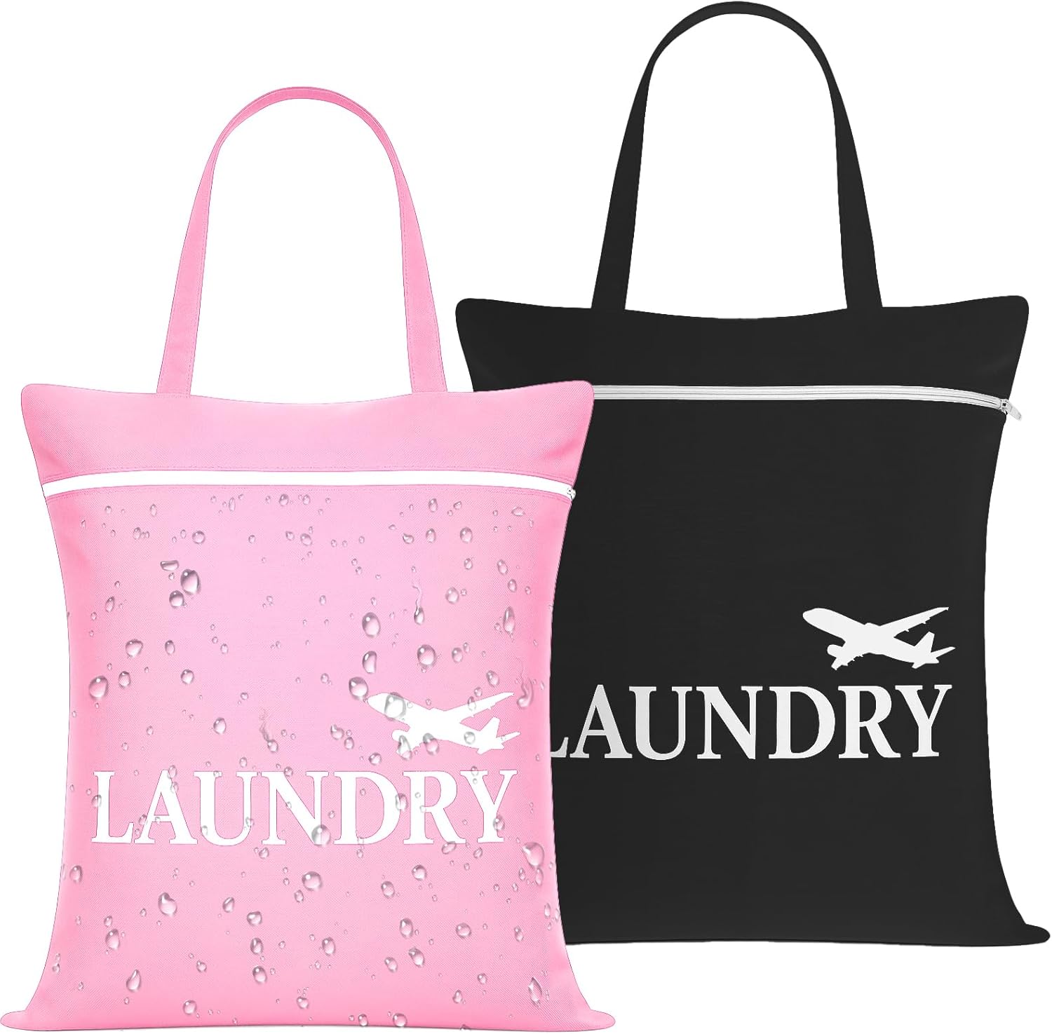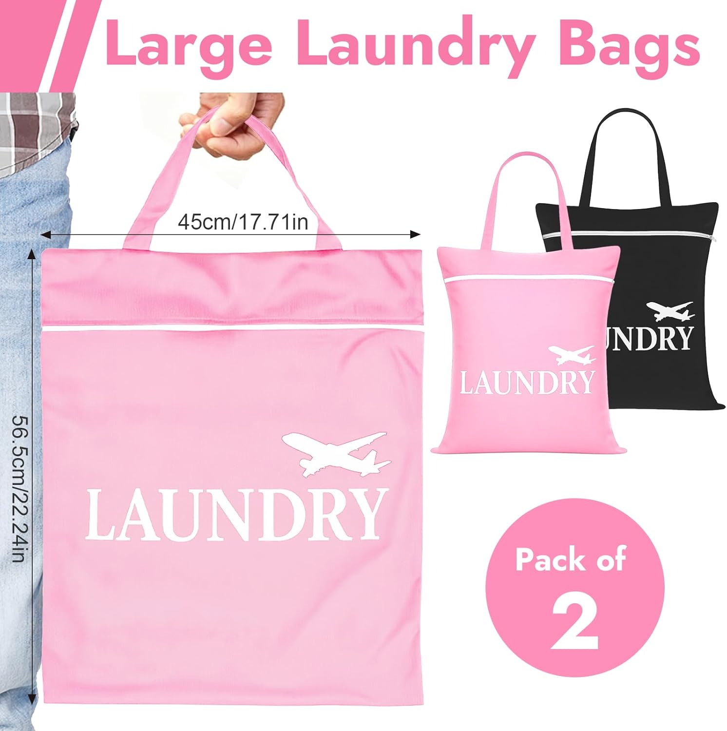 2 Große Reise-Wäschesäck: Sie erhalten einen schwarzen und einen rosa Reise-Wäschesack mit den Maßen ca. 58 x 46 cm, Sie verfügen über einen Tragegriff und einen Reißverschluss und eignen sich somit perfekt für Reisen, das Fitnessstudio oder das Wohnheim