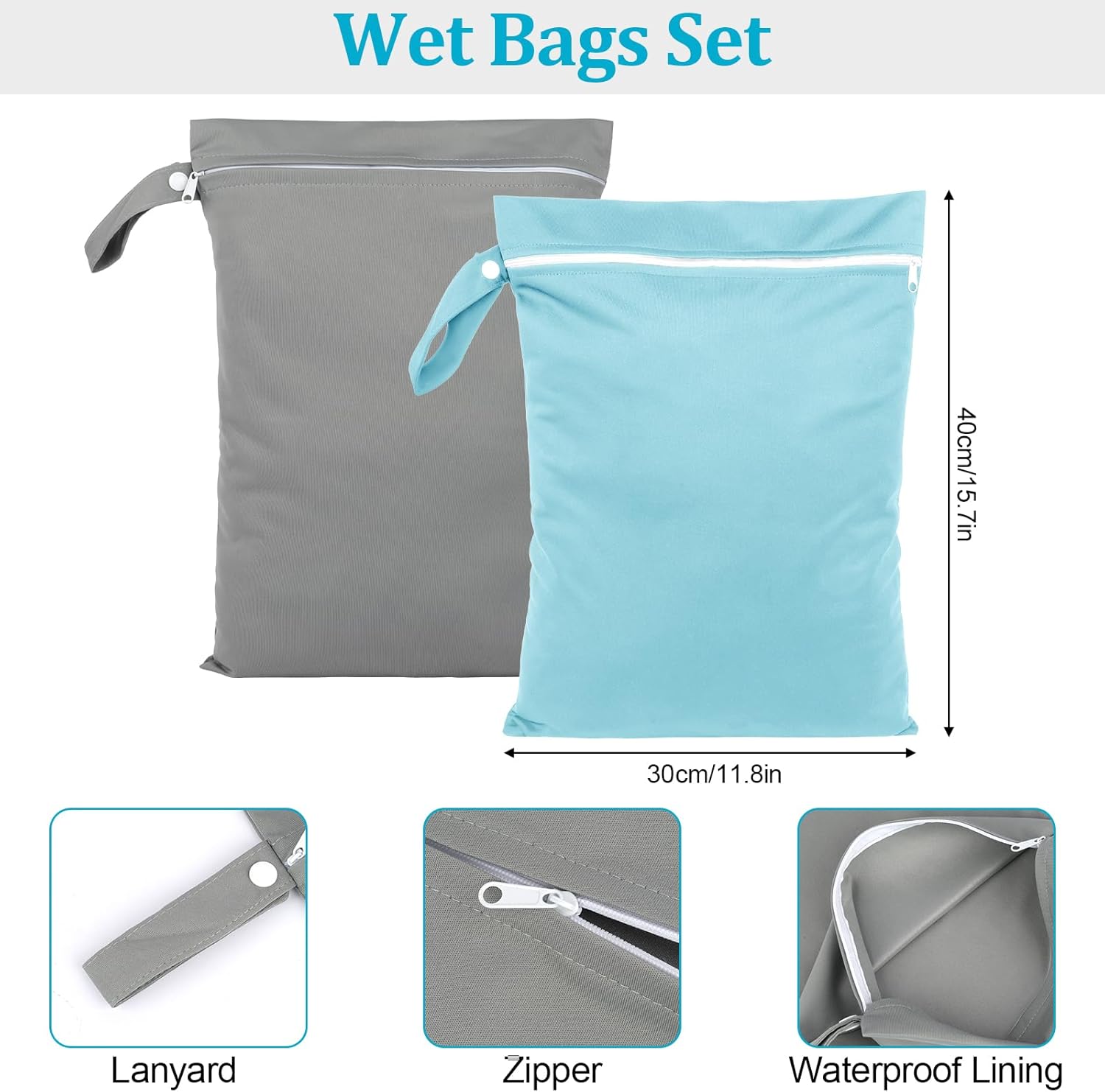 8 Rezensionen für 2 Stück Nassbeutel Schwimmen, wasserdichte Nasstasche 40 x 30 cm, Blau & Grau Wetbag Schwimmsachen mit Reißverschluss, Wiederverwendbar Reise Wäschesack für Schmutzige, Strandtücher, Windeln
