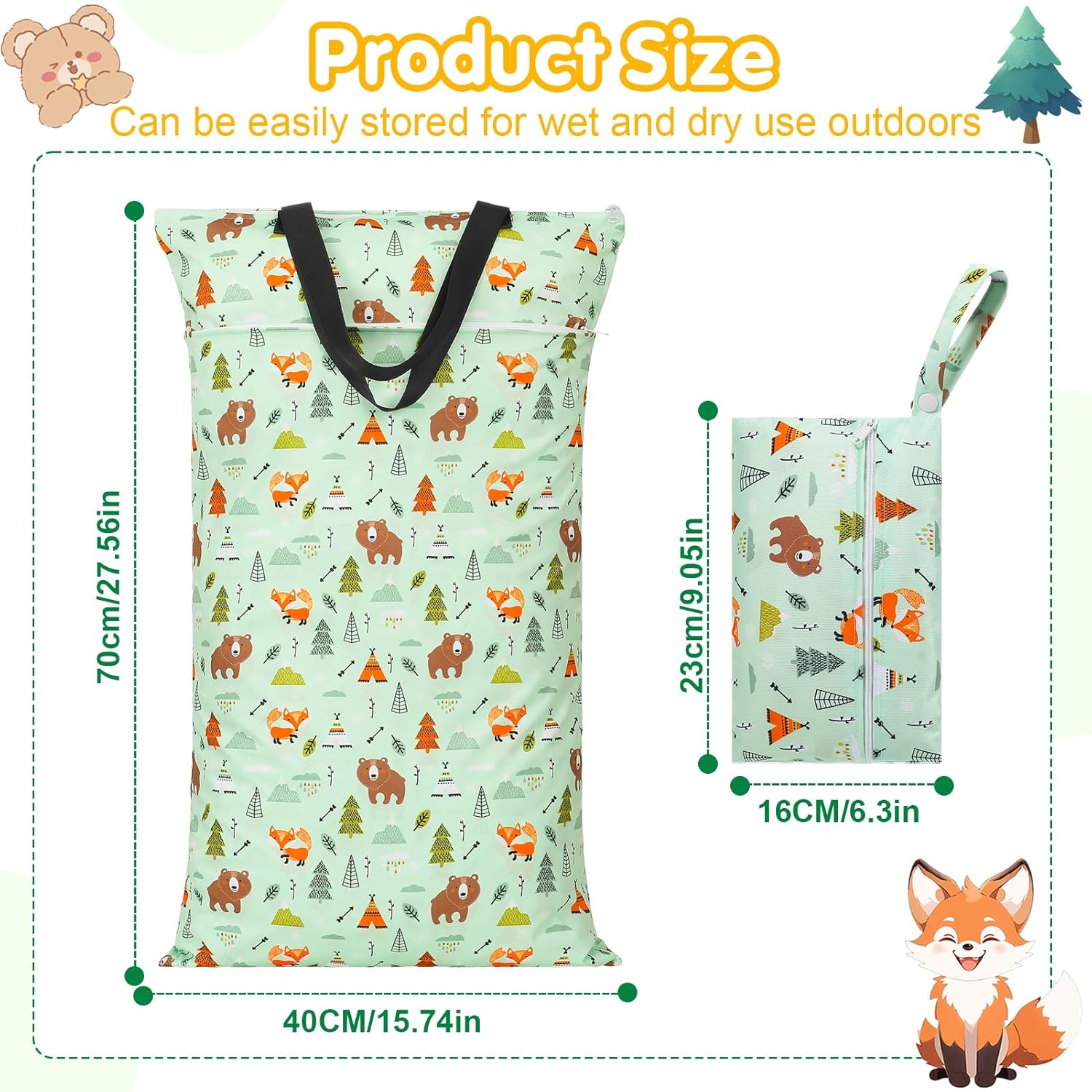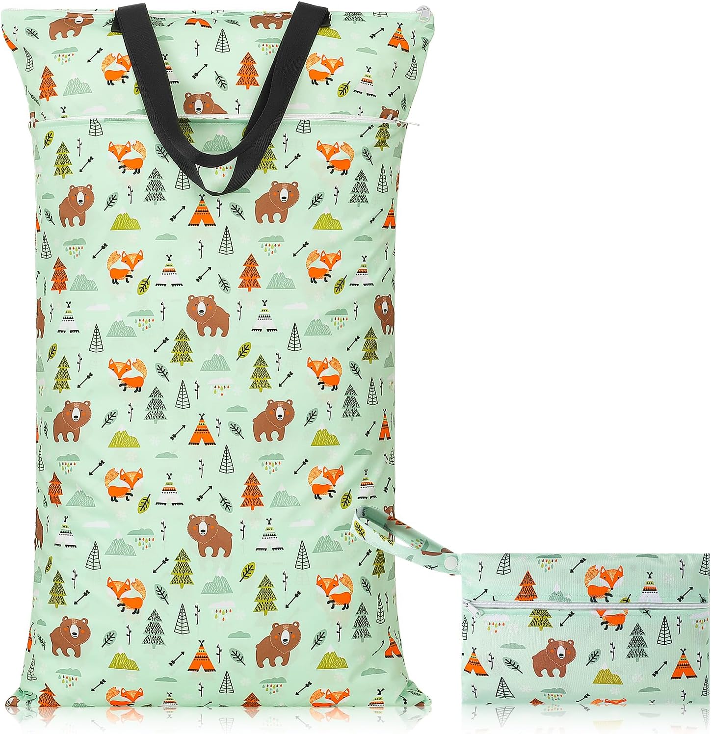 2er Set:Große Aufbewahrungstasche (70 x 40 cm) hat 2 Reißverschlüsse und 2 Fächer zum Trennen von schmutzigen und sauberen Windeln oder anderen nassen Gegenständen.Kleine Tasche(23 x 16 cm),Kleine Größe für den täglichen Transport