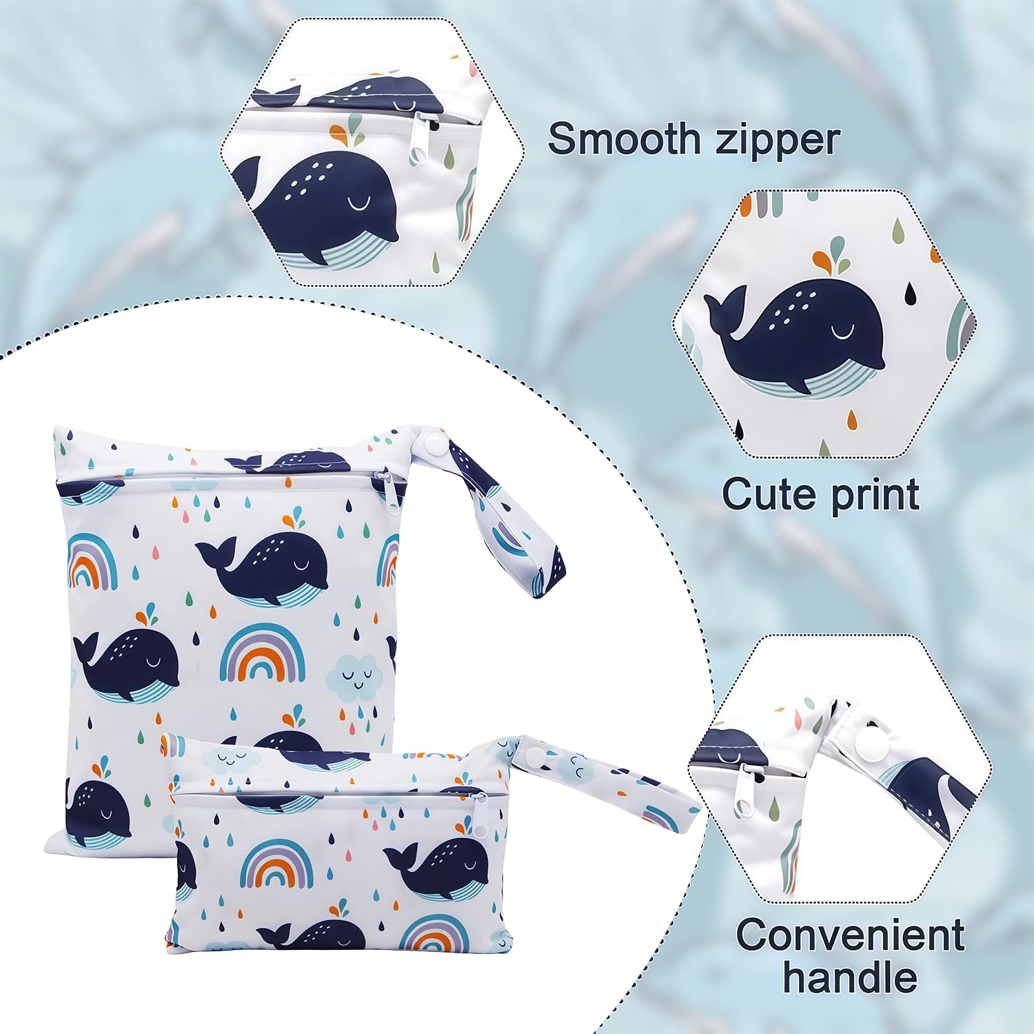 ALLY-MAGIC Baby Nasstaschen,Wetbag Organiser Beutel, Wiederverwendbare Wet Bag,wasserdicht Stoffwindeln Nasstaschen für Kindergarten,Reisen, Gym,Schwimmsachen-Walstil E25-FSBNBSD