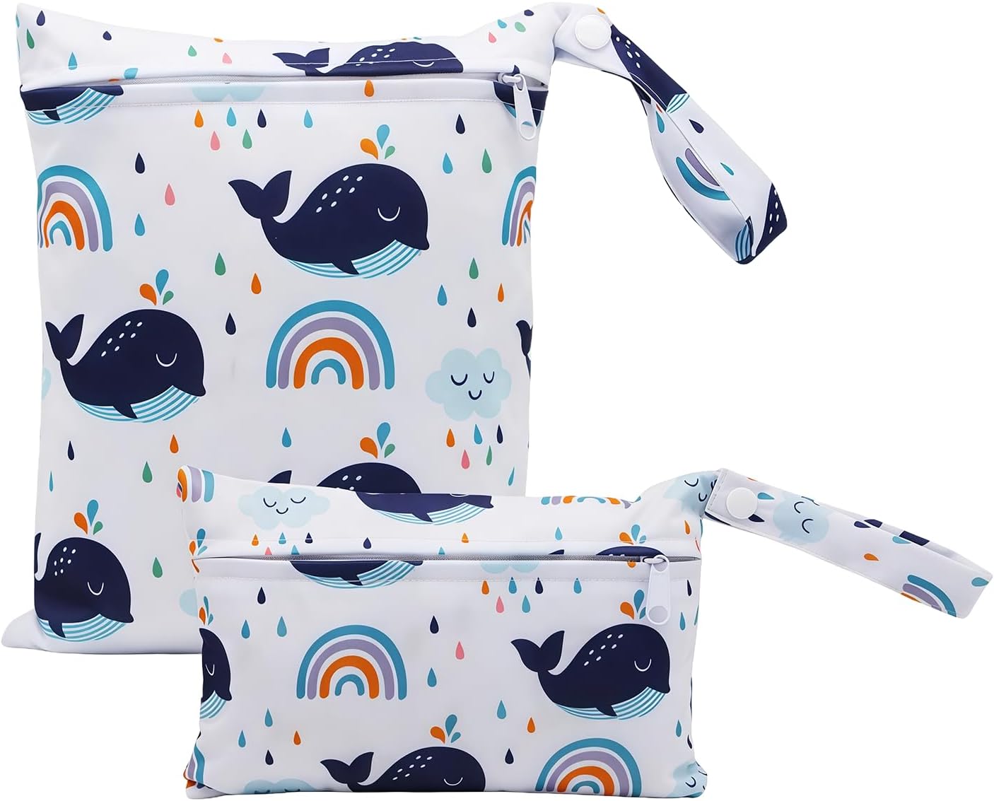 ALLY-MAGIC Wetbag Kindergarten, Wetbag Stoffwindeln Wiederverwendbare, 2 Stück Nassbeutel mit Reißverschluss für Kleinkind-Windeln Reisen Strand und Pool E25-FSBNBSD