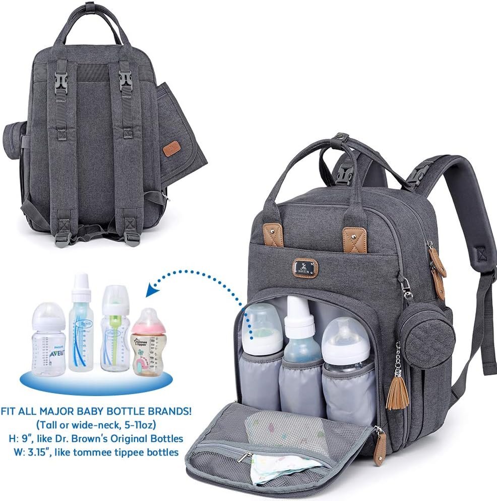 Unfortunately there are a few big design flaws which make all the difference as a parent. The first is the zips – they’re not possible to open and close with one hand and often get caught on the teeth/kinks when pulling meaning you need both hands to operate the opening and closing. The second flaw is the front bottles pouch, it almost needs some elastic to help expand it when there are three bottles as it’s so tight when the rest off the bag is full. I also haven’t found the insulated pockets to keep any of my bottles warm which is a huge issue. The last flaw is the wipes dispenser pocket on the side, the opening isn’t quite in the right spot for most of the wipes so you can’t really pull them out easily – you really have to stuff the wipes as far down into the pocket that they will go and they still don’t quite open. Aside from these things there are plenty of pockets, the material is okay quality, the top handles are a bit flimsy and the plastic parts for the straps feel like they could break fairly easily with excessive use. I wouldn’t purchase it again, and if I hadn’t been using it for the past few months, I’d probably return it. Save you money and buy something else.
