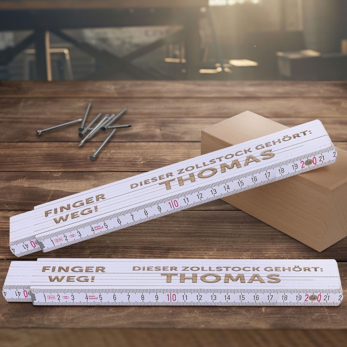 Dieser personalisierte Zollstock ist nicht nur ein praktisches Werkzeug, sondern auch ein symbolisches Geschenk, das bei jedem Gebrauch an den Schenker erinnert.
