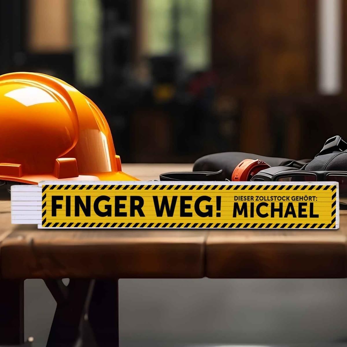 GRAVURZEILE Zollstock 2 Meter mit Gravur oder UV Druck – Finger Weg! – Personalisiert mit Namen – Gliedermaßstab mit Winkelanzeige – Geschenke für Männer Papa und Opa – Vatertagsgeschenk – UV Druck