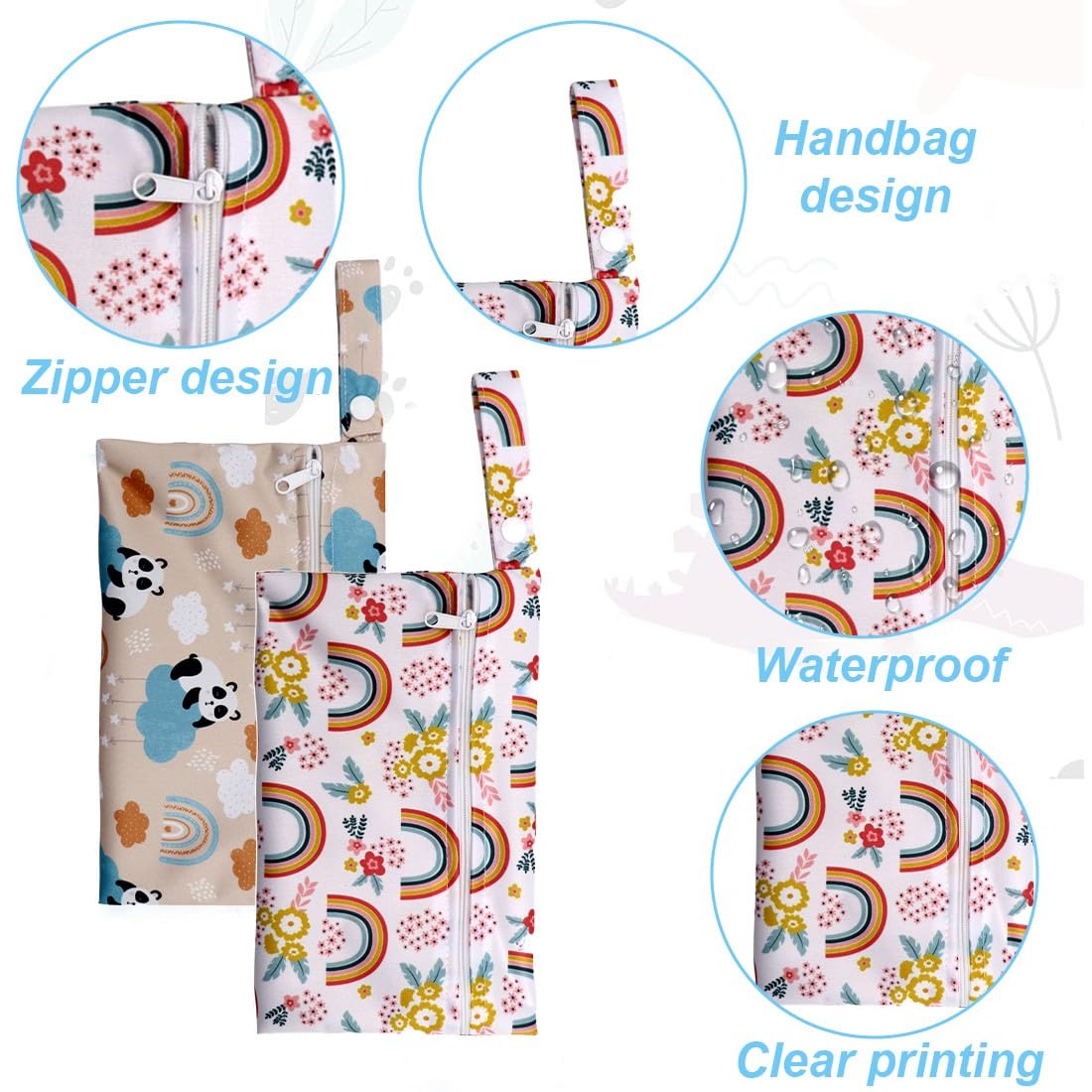 JYNXOR 2 Stück Wetbag Kindergarten Klein, Wickeltasche wasserdichte Windeltasche Nasstasche, Wiederverwendbare Wet Bag mit Reißverschluss, Windelbeutel Dry Bag für Reisen Unterwegs