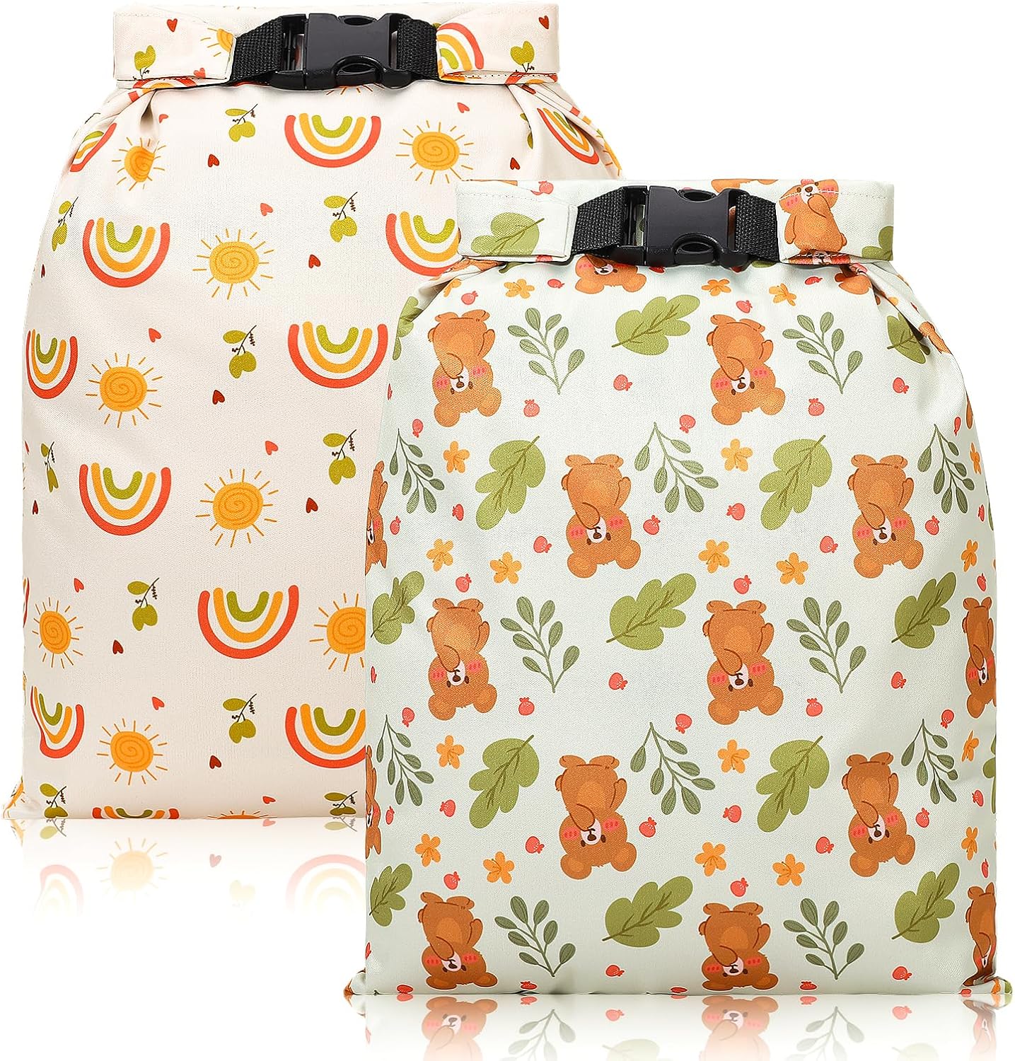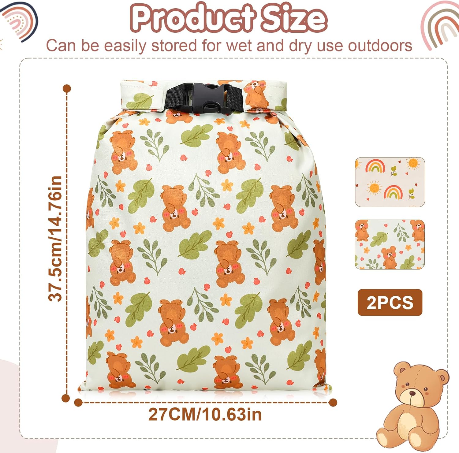 Kaisibum Pack of 2 Wetbag Nursery, Waterproof Wet Bag, Nappy Bags with Closure Buckle, Wet and Dry Changing Bag, Washable Wet Bag Organiser for Toddlers, Nappies, Travel, Gym, Cartoon pattern print,
