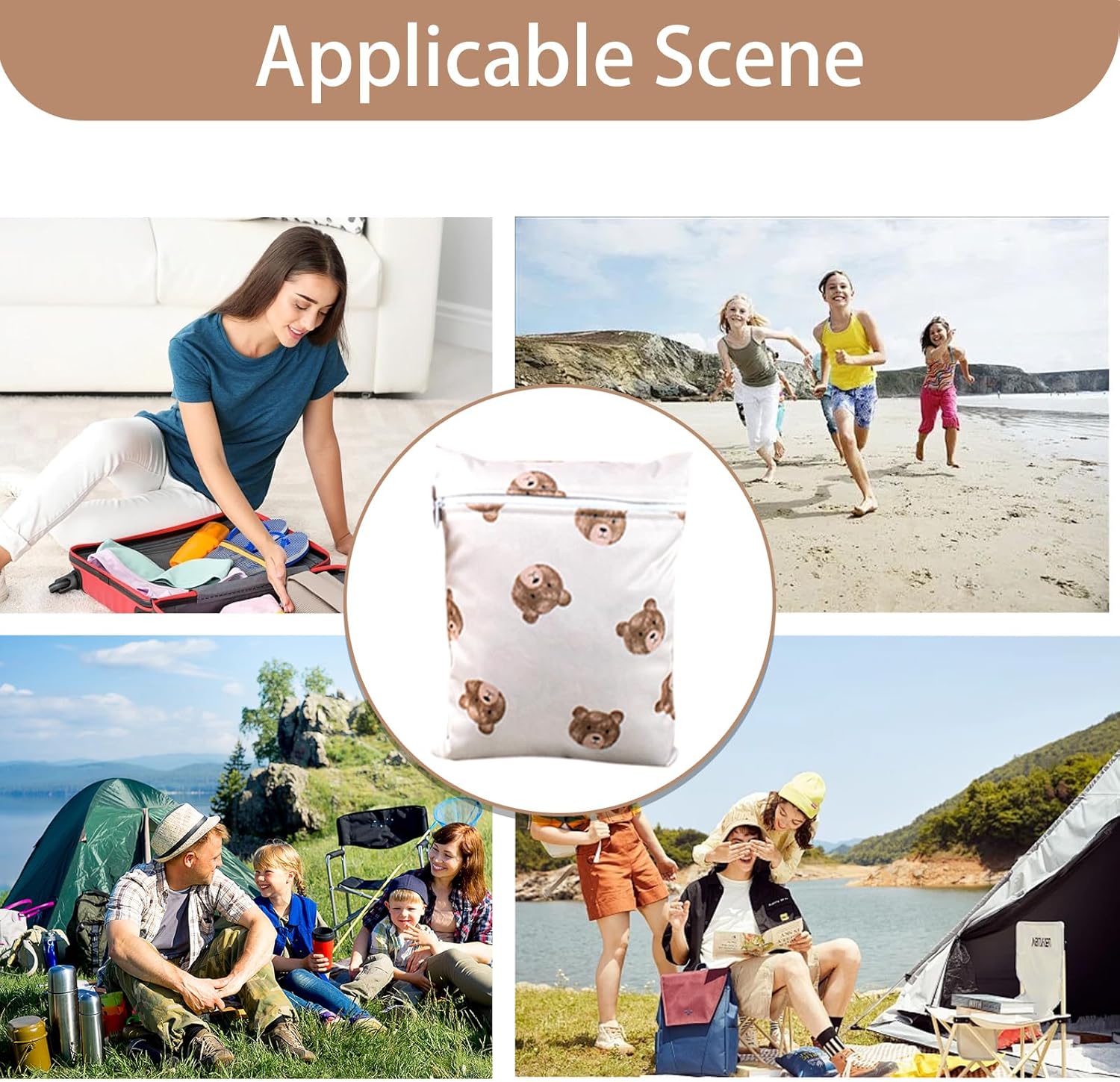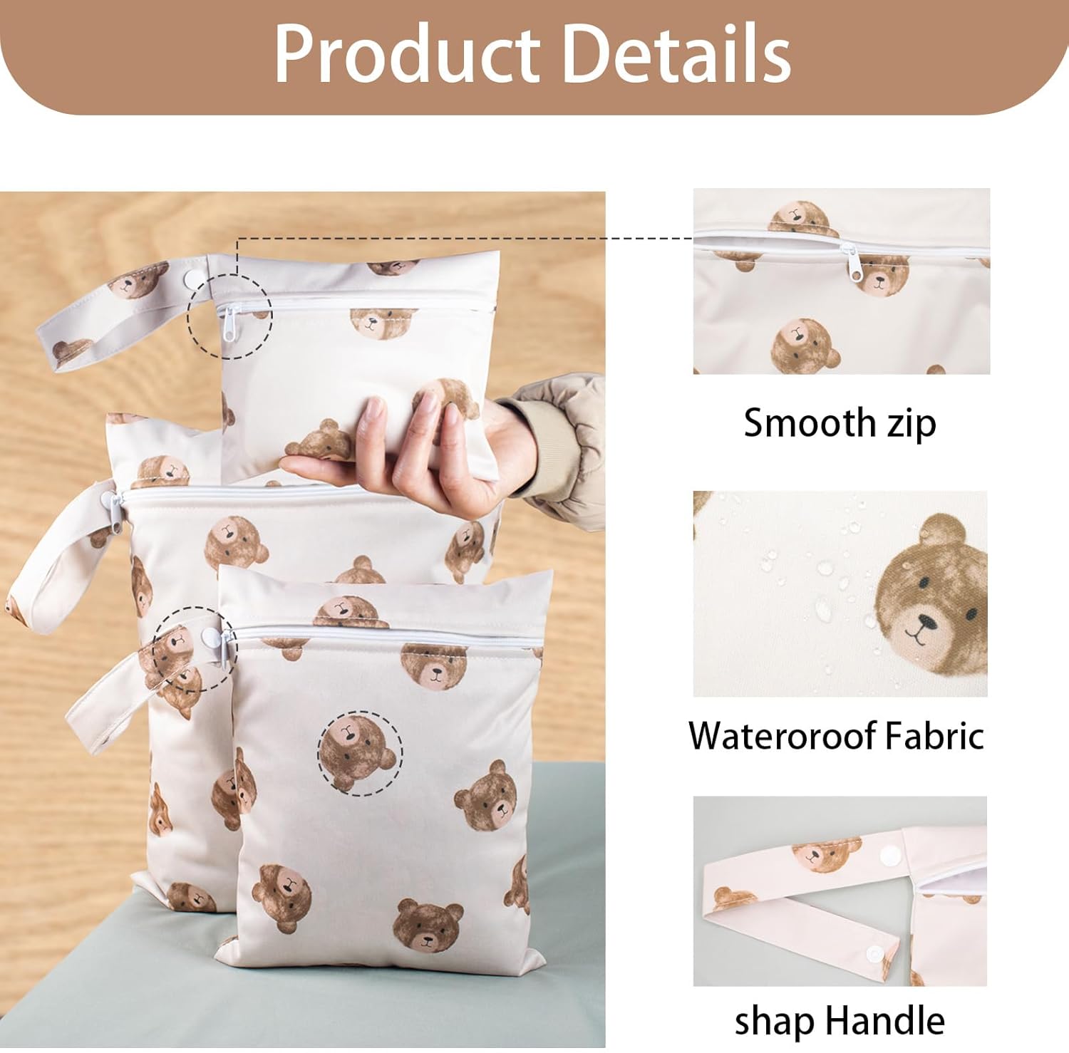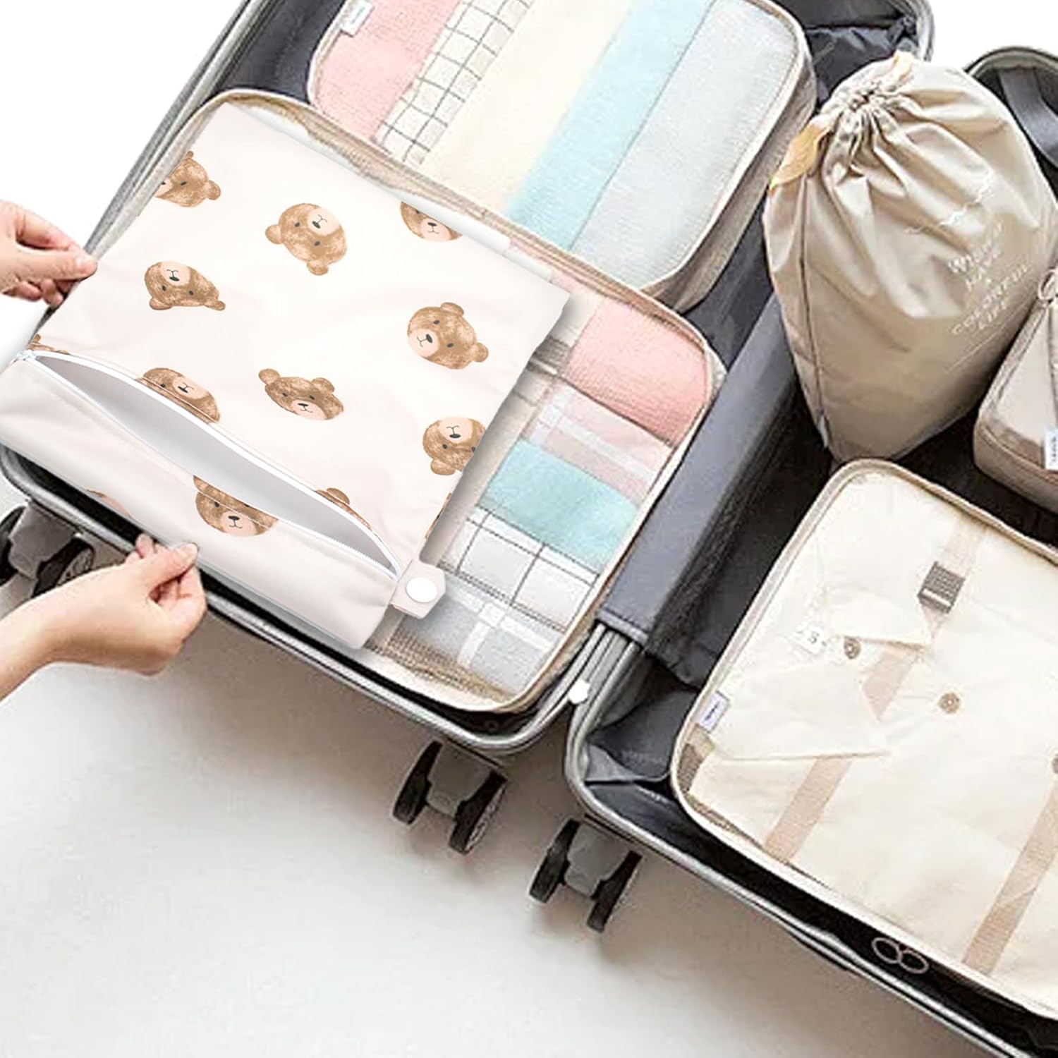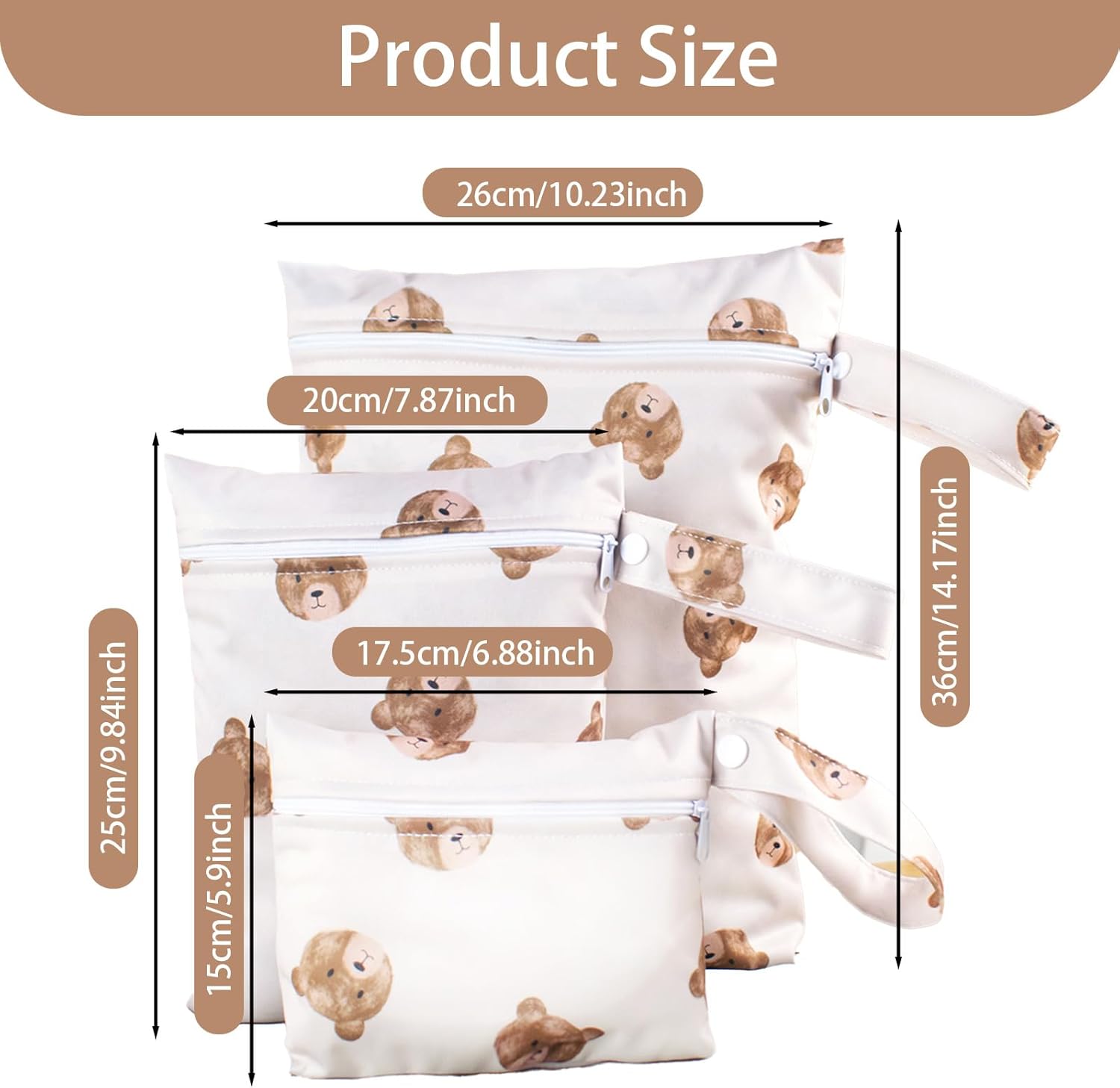 KASESSS Pack of 3 Bear Pattern Wet Bags Nappy Bag, Wet Bag, Wetbag Nursery Nappy Bag for On the Go with Zip, Wet Bag Nappy Bag, Wet Bag Organiser for Swimming Gym Travel