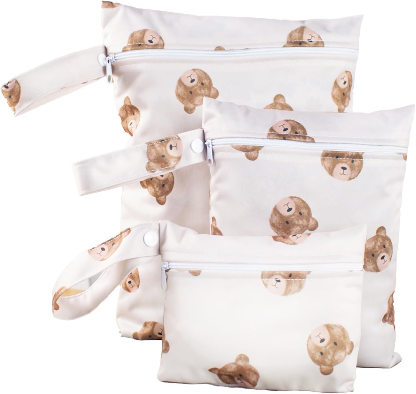 KASESSS Pack of 3 Bear Pattern Wet Bags, Nappy Bag, Wet Bag, Nursery Wetbag, Nappy Bag for On the Go with Zip, Wet Bag Nappy Bag, Wet Bag Organiser for Swimming, Gym, Travel