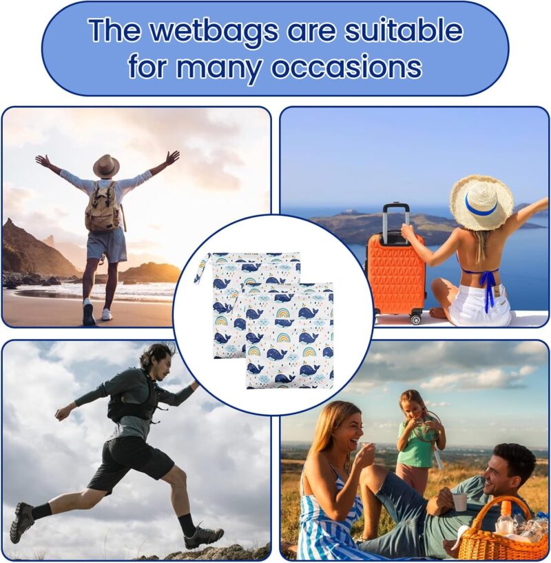 MOLENCO 2 Stück Wetbag Kindergarten Nasstasche Windeltaschen Wasserdicht Waschbar Nassbeutel Organiser mit Reißverschluss für Kleinkind Windeln Reisen Gym Strand Pool(Große)