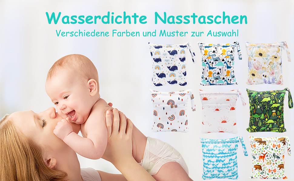 Stoffwindeln Nasstaschen Kindergarten, Windeltasche Wetbags Wickeltasche Nassbeutel Organiser Taschen Große Wiederverwendbar Wasserdicht mit Reißverschluss für Baby