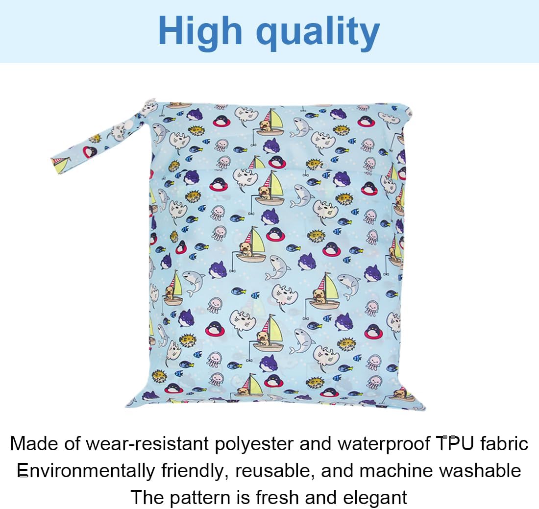 EBHO 2 Stück Wetbag Kindergarten Nasstasche, Wetbag Organiser Beutel, Wet Dry Cloth Windeltasche,Nasstaschen für Kindergarten,für Baby Reisen Unterwegs (Groß und Klein)