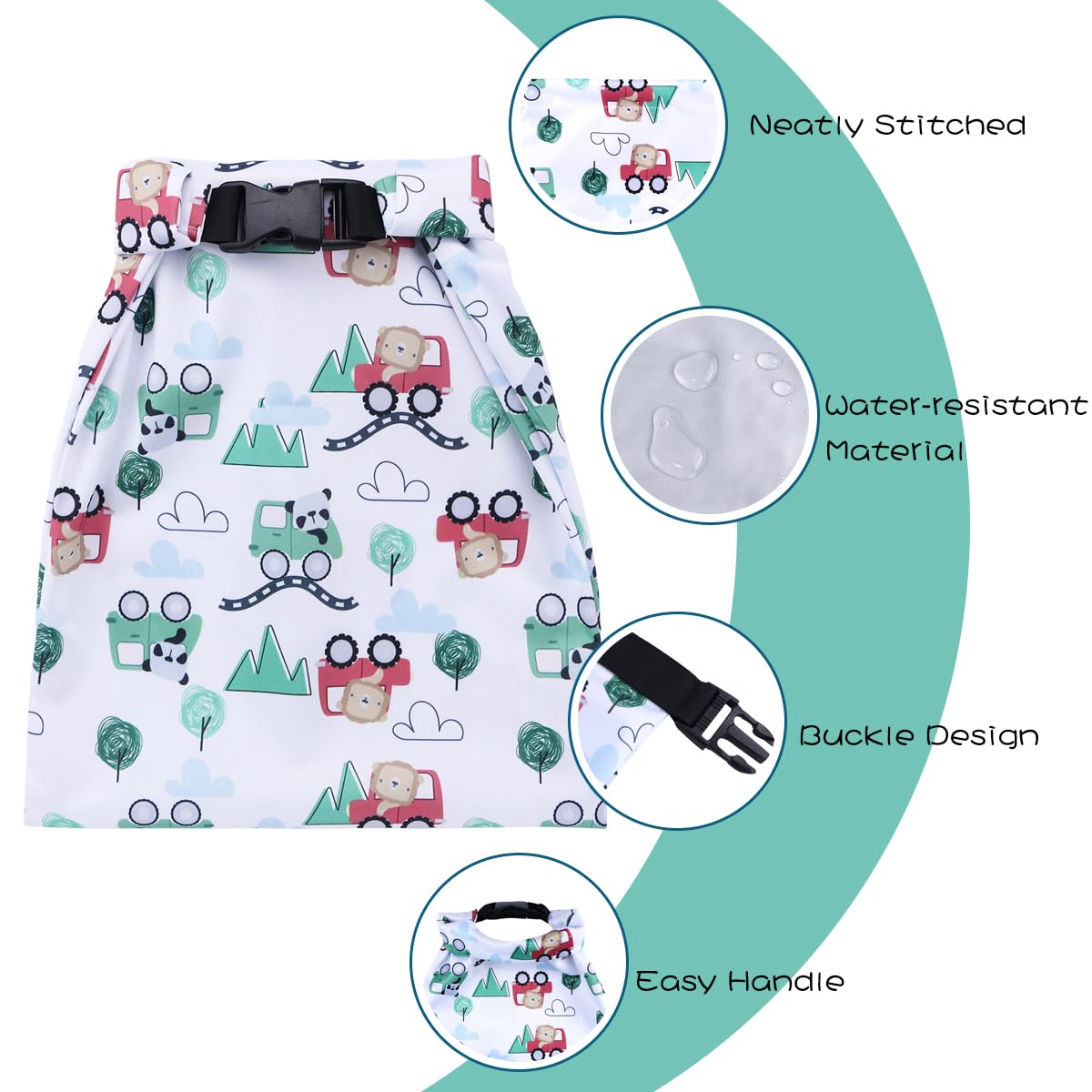 Design: Modisches Schnallen-Design, einfacher Falt- und Rollverschluss für einfaches Windelwechseln mit einer Hand. Die gefaltete Tasche kann an Ihrem Kinderwagen befestigt werden, wenn Sie mit Ihrem Baby spazieren gehen, Supermarkt oder auf Reisen gehen.