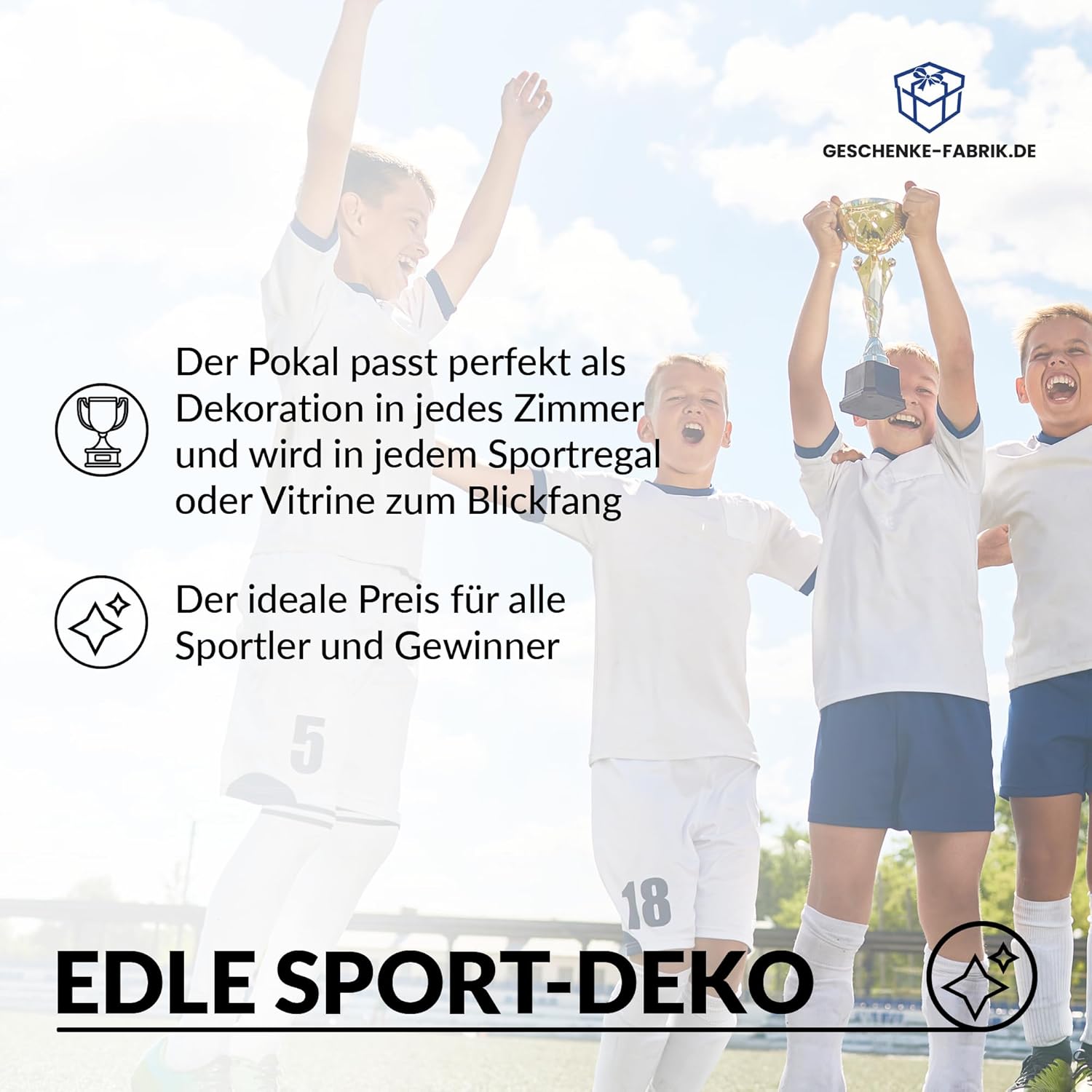 SPORT DEKO: Mit dem edlen Design passt der Pokal perfekt als Dekoration in jedes Zimmer und wird garantiert im Sportregal oder in der Vitrine zum Blickfang. Ideal als Preis für den Gewinner.