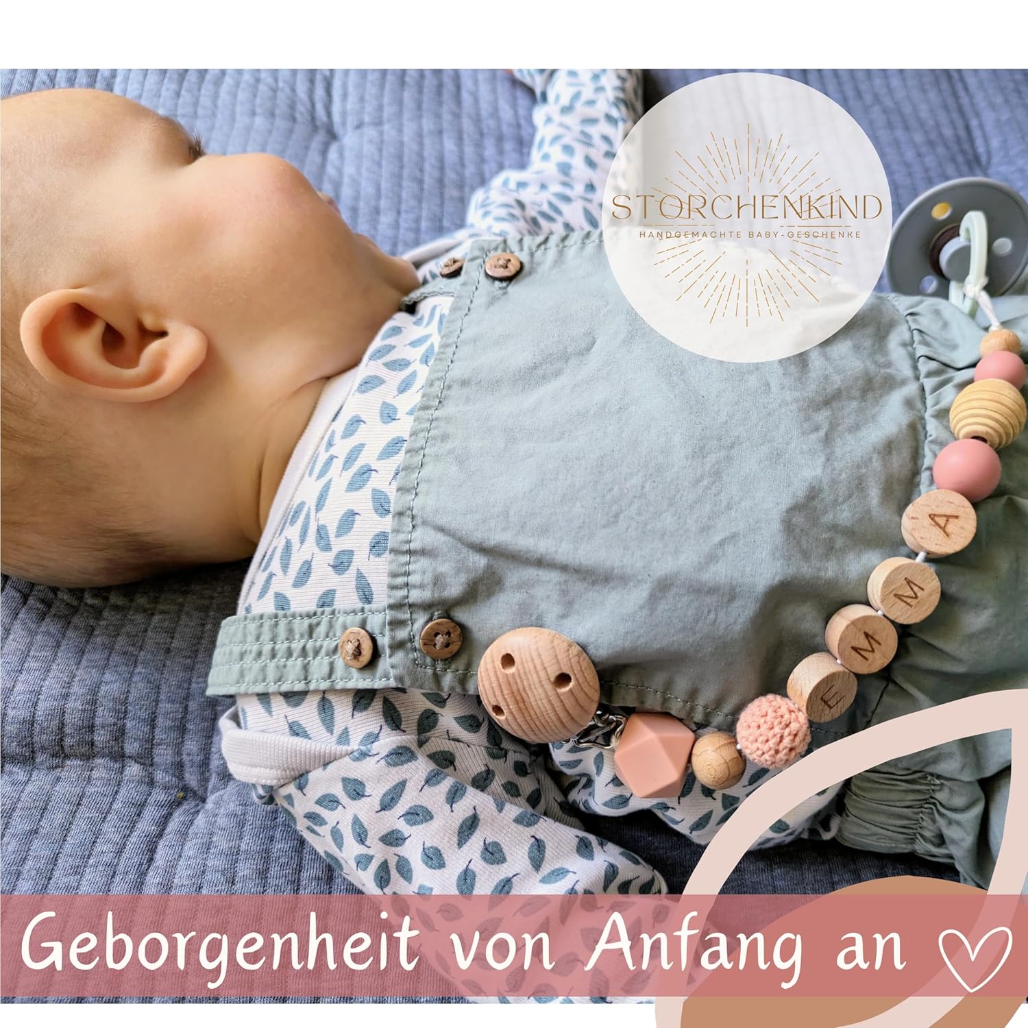 🌳 QUALITÄT – Wir verwenden ausschließlich hochwertige, lasergravierte Holzbuchstaben und Silikon in Lebensmittelqualität. Wir verzichten vollständig auf günstige Perlen aus Plastik.