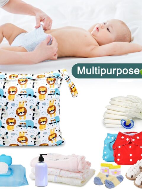 HOTLIKE Windeltasche, wasserdichte Stofftaschen 2 Stück Wetbag Kindergarten, Nassbeutel Nasstasche Baby Wickeltasche, Wiederverwendbare Organiser, Multifunktionale für Baby Reisen Unterwegs Gym, Weiß