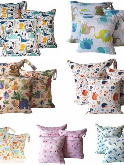 3 Stück Wet Bag Kindergarten,28 * 30CM wasserdichte Wetbag,Wiederverwendbare Nasstaschen mit Reißverschluss,Nassbeutel Kindergarten für Baby Reisen Unterwegs